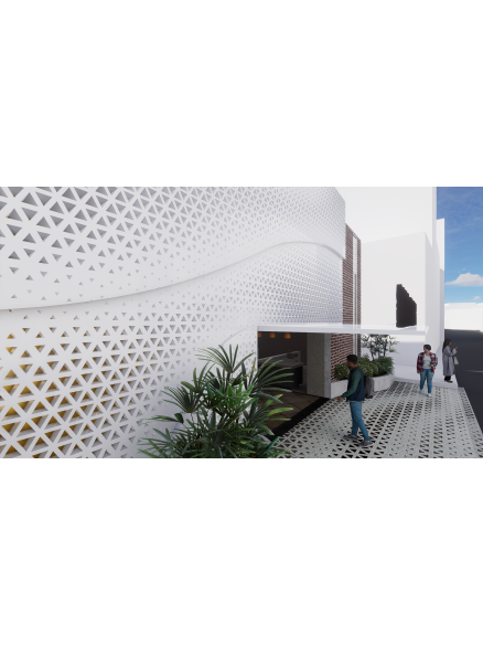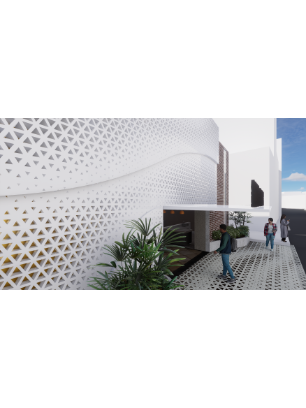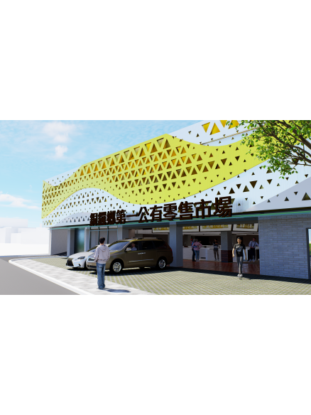 本案以「連結與再生」為主要設計思維,透過重整市場機能,讓攤販與居民之間重新建立互動關係,使市場再次成為社區生活的中心。建築立面延續周邊街屋前後交疊的層次語彙,以立面錯動與陰影變化呼應舊街區的空間節奏,同時朝向東側開展,引入自然光與景觀視野,形塑開放、流動的市場氛圍。