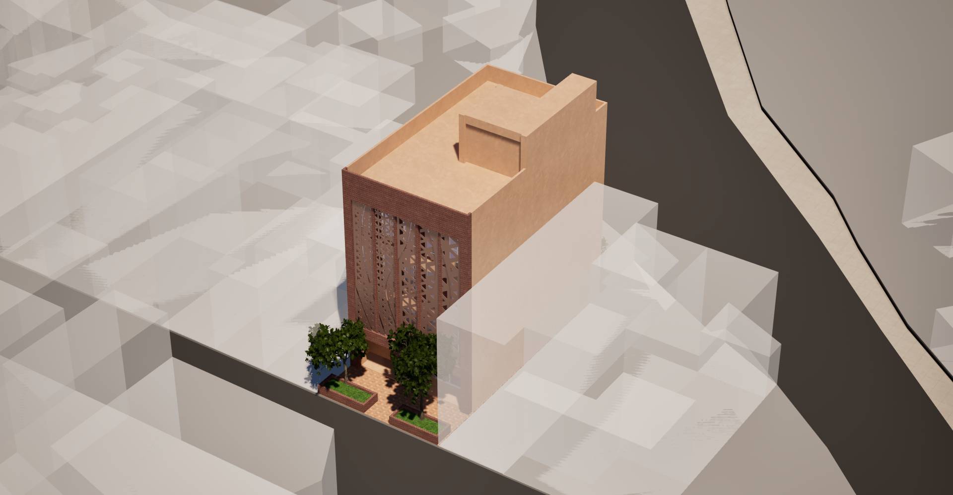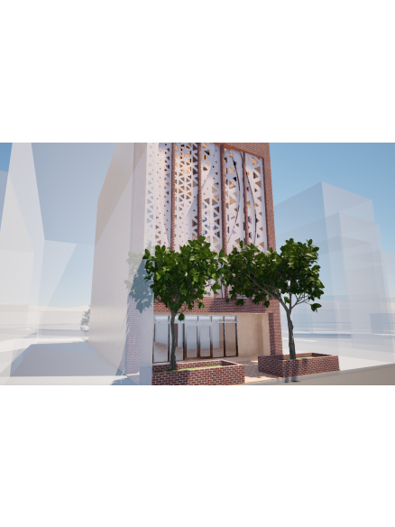 2. 建築與街區之連結:建築量體與立面設計回應周邊街屋尺度與立面節奏,透過層次錯動與比例控制,使活動中心自然融入既有街區紋理,成為街道生活的延伸。